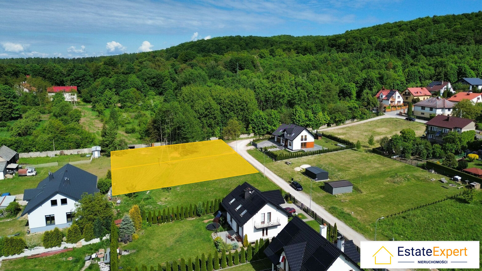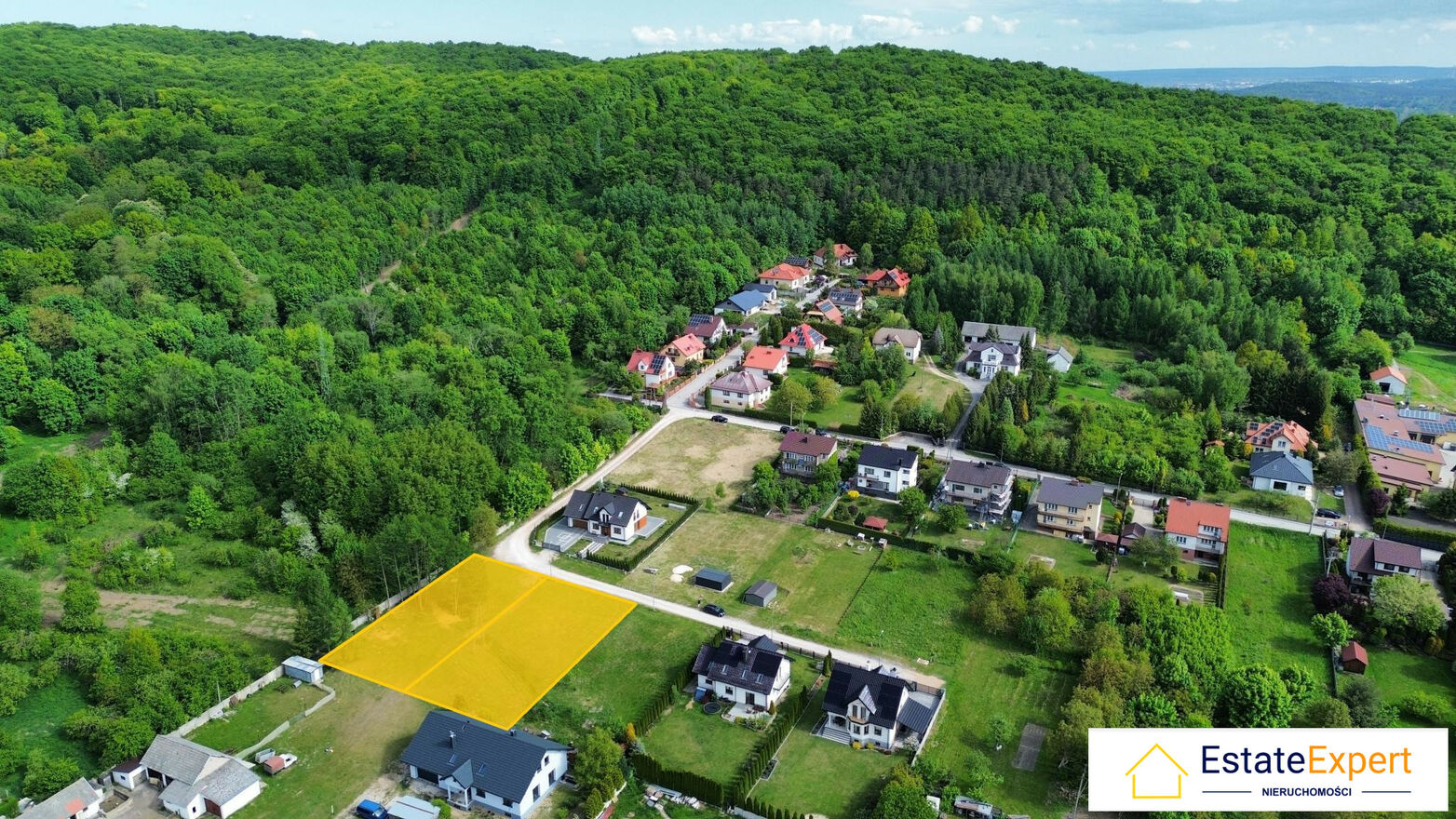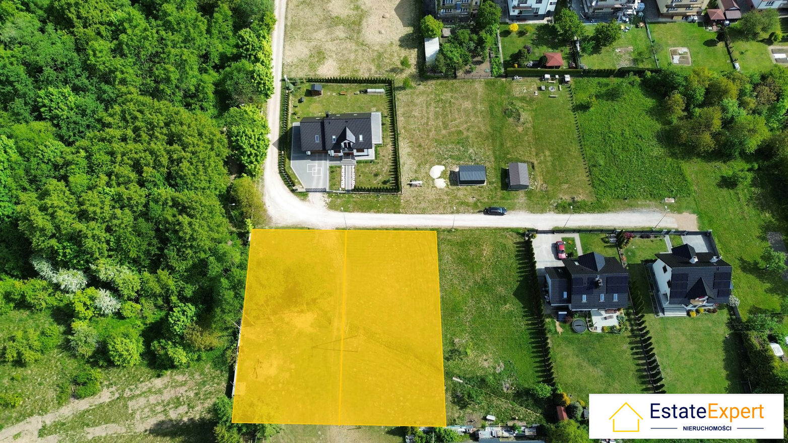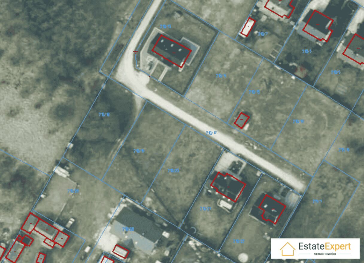 Działki w kształcie prostokąta o wymiarach ok 21m x 42 m każda. Znajdują się w spokojnej, pełnej zieleni okolicy w sąsiedztwo nowych domów.